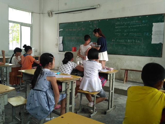 16光电大学生前往寿县以支教小学生的形式开展支教活动。今天是活动正式开始的第一天。小学校长给我们安排了一间教室,我们打好卫生后,就在焦急的等待孩子们的到来,幸运的是本次参加补课的同学有23人,我们支教老师一共十个人。第一节课数学课,由王兵教导;第二节课语文课,由李恰教导;第三节课英语课,由朱茹洁教导。孩子们由于年龄小,而且班级没有统一,所以里面既有四年级以下的也有以上的,所以每个人的接受反应能力不同,但总体上还是良好的。下午,由于设备的欠缺,我们将观影改为辅导,途中陈元霞教导英语。在4.20,我们带孩子们玩抢板凳游戏,同学们的脸都笑开了花。