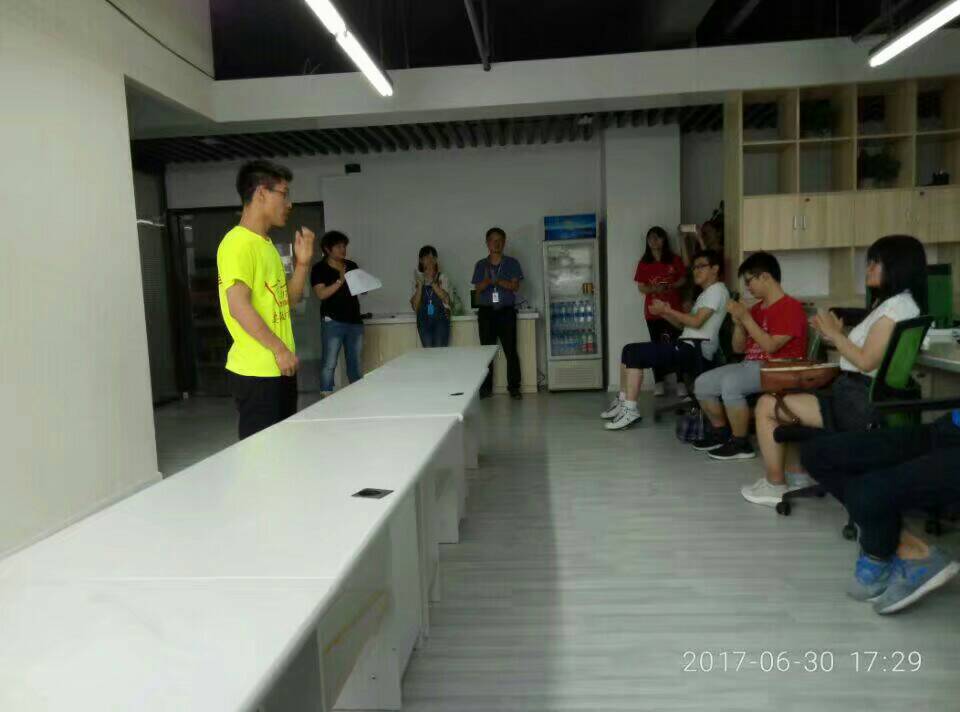 下午公司召开例行员工大会,队长韩军代表团队上台发表了演讲,他首先对爱夫卡公司的热情接待以及师傅们的耐心指导表示了感谢,然后又对未来几天的实践生活进行了展望,队员们在下面听的心潮澎湃,一个个都在心里鼓足了干劲。其后例会还对进行了迎接新员工,对工作成绩良好的部门及个人进行颁奖等程序,这让队员们很好地了解到一个优秀的企业所拥有的文化,也让大家对于以后的工作生活有了更多的憧憬。
