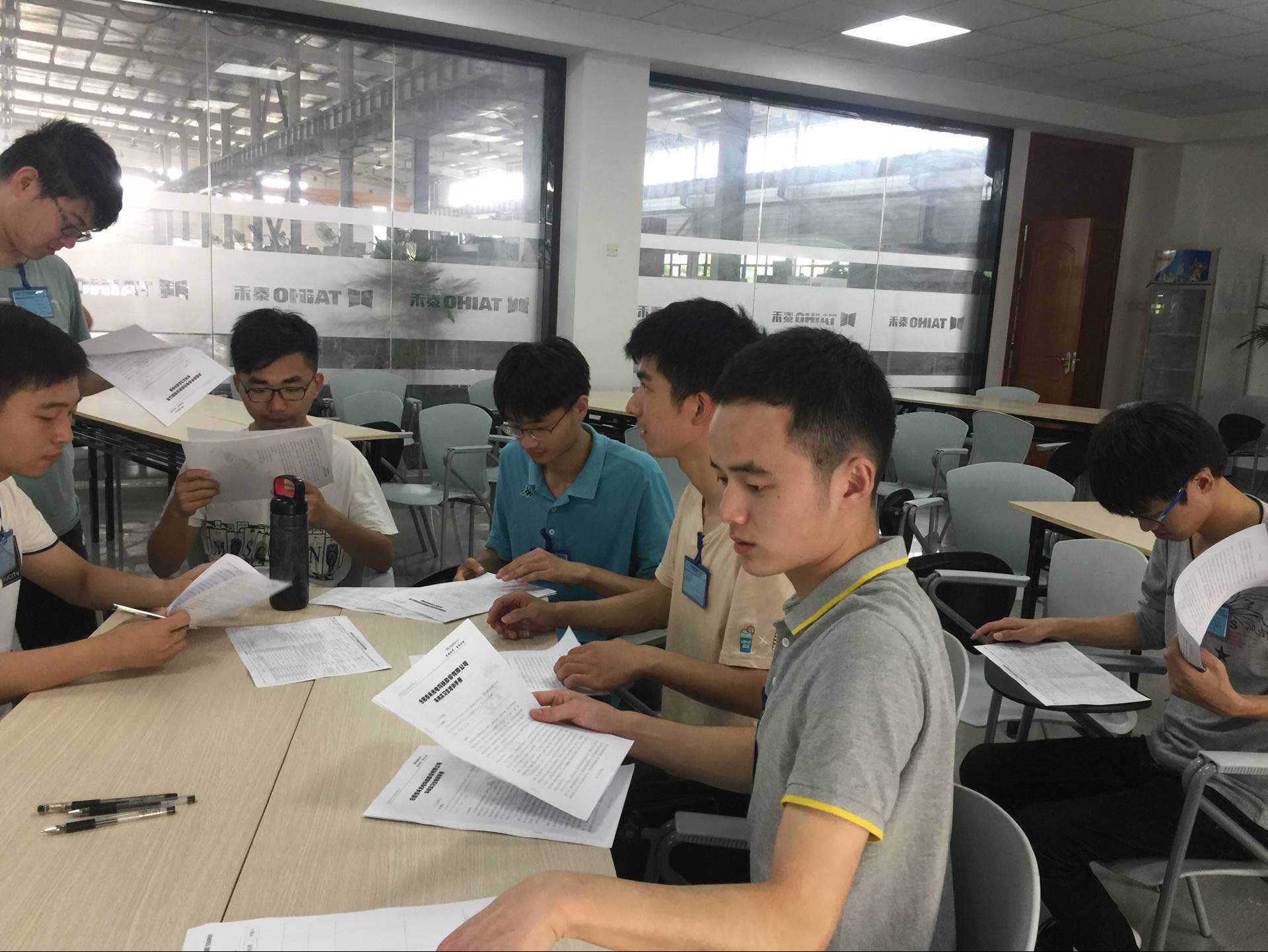 下午4:00左右,在经过长达3个多小时的车程后,实践团队成功抵达实践地点。随着实践团队负责人张芙舟对队员进行宿舍的入住,领取工作牌,自己其他相关事宜的安排。实践负责人和队员们召开第一次工作会议。会议上,为了保障本次实践的顺利进行,确保活动质量,队员们在会议上表现热烈,积极参与讨论。包括实践安全、实习参观项目、工作时间安排等许多涉及到实践核心的关键问题都被列为会议讨论项目,同时实践负责人张芙舟也强调指出:希望大家及时熟悉公司生产和工作环境,以及各项规章制度,积极向技术人员学习,养出吃苦耐劳的精神,努力做到理论与实践相结合,更好的培养自己的社会实践意识,最后祝愿队员们在这段时间内能有所收获和感悟。会议中,队员们根据公司有关规定分发实践活动安排表,填写个人信息和实践安全问题责任书,真正做到责任有人担,安全有保障。