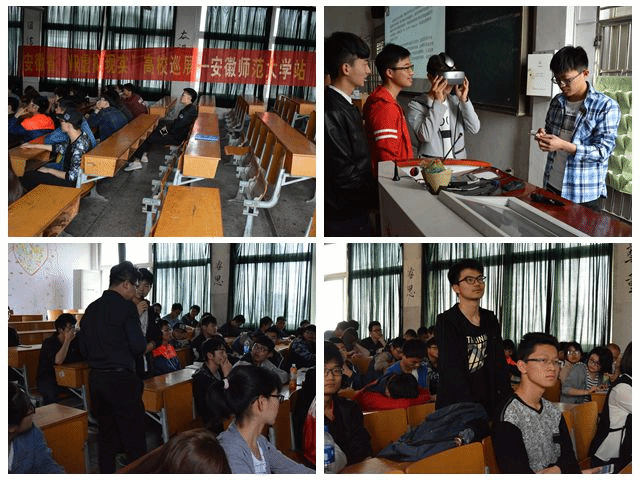 积极联系合肥科硕创新创业学院于4月26号14:00在物理楼3401教室举办“科技进校园巡展活动”——VR(虚拟现实)。合肥科硕创新创业学院技术宣讲人员,辅导员蒋婷婷和秦瑾琼以及2016级各专业学生代表以及电协发协的协会成员代表出席了本次活动。