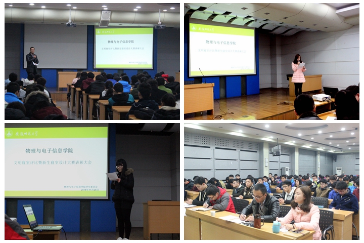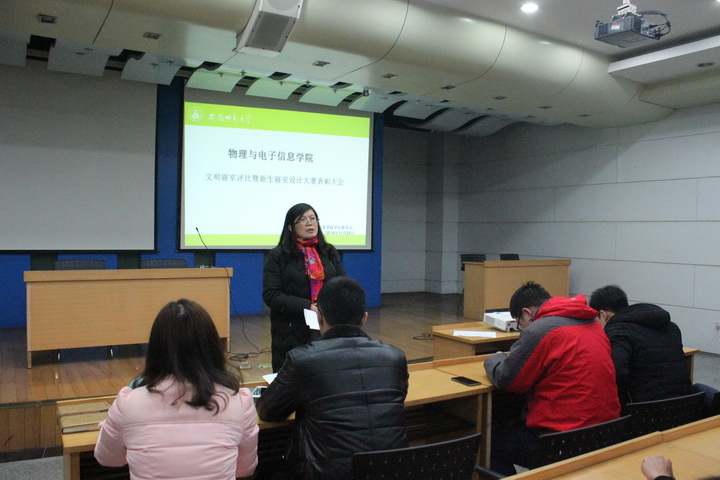 在赭山校区就业报告厅举行文明寝室与新生寝室设计大赛表彰大会。学院院党委书记李娟、团委书记米佳佳、全体辅导员、各班级主要学生干部、全体寝室寝室长出席大会。