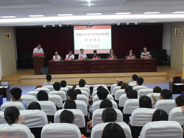 在培养创新人才方面所做的工作。他指出随着我国经济社会的不断发展、综合国力的持续提升,已经逐渐从学习利用人类已有成果,转变成引领世界科技发展潮流、更加注重原始创造的科技创新型强国,党的十八届五中全会提出的五大发展理念,创新发展居于首位,进一步说明了创新的重要性。大学是推动科技发展的生力军和创新型人才培养的桥头堡,大学应该明确自己扮演的角色和人才培养的价值观、着力点,师大高度重视大学生创新创业教育工作,全校开展了12项涉及学生“双创”类的项目或活动。全体学员能够有幸加入学校创新创业的大家庭中,既要真学实干,刻苦专研,也要有当代大学生的创新情怀和科学精神,有责任、有义务将创新火种传递给更多的人。