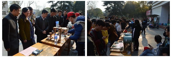 启动仪式结束后,现场来宾和领导到食堂广场参观了科普知识展板,体验了科普展品。基于MSP430F149单片机与无线NRF24L01设计的无线传输温度传输器、采用STM32芯片作为核心进行全自动投币洗衣机控制系统的设计、以单片机为核心的声控机器人等14件学生科技作品激发了师生“走进科学”的兴趣。参观结束后,芜湖市科技馆与85Tube