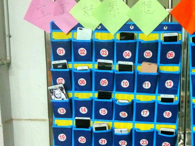 班会结束后,班委带头将自己的手机放到讲台处的手机袋中,同学们也积极响应了号召,表示要让自己的“宝宝”好好“休息”一下。