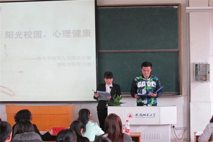 学生会学习部主办的第九届“阳光校园,心理健康”主题英语演讲比赛在物理楼3301教室举行,参担任评委是孙玉莲与夏月霞老师。