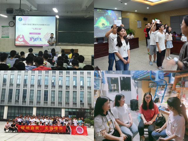 班级活动形式多样。主题班会解答心理困惑。各班级围绕“在挫折中奋起,在压力中成长”,召开“致青春”“快乐大学生活”等主题班会,结合班级情况就“什么是挫折”“挫折的来源”及“如何面对挫折”等话题展开讨论,大家畅所欲言、各抒己见,敞开心扉提出面对挫折的方法。心理电影介绍咨询途径。17自动化以观看微电影《三个我》为切入点,增进同学们对心理问题、心理咨询及心理健康教育的认识,积极宣传心理咨询预约方法与途径。板报展示宣传心理知识。18电子、光电等班级用心绘制心理知识板报,开展“挫折应对”“压力管理”知识宣传。寝室座谈增进心理支持。通过开展“寝室主题生活会”“室友座谈会”等活动,构建班-寝心理健康工作网,惠及每位同学,增进彼此支持。趣味活动促进心理健康。17电子、18通信、自动化等分别开展“心灵之语”“与你相约”“悦纳自我,快乐人生”等趣味活动,让同学们寓教于乐,在活动中增进友谊,释放压力。