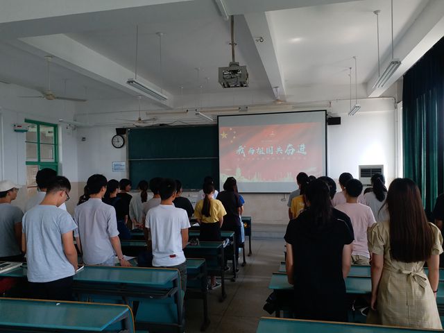 本网讯(17光电 吕游、何程程)为隆重庆祝中华人民共和国成立70周年,大力唱响礼赞新中国、奋进新时代的青春主旋律,9月17日下午,2017级光电信息科学与工程团支部在行知楼2010501教室开展“我与祖国共奋进”特别主题团日活动,通过“沉浸式”的仪式教育,激励和引导团支部团员青年大力弘扬以爱国主义为核心的伟大民族精神,勇担使命,奋力前行。此次团日活动由团支部书记吕游主持,团支部全体团员青年参加了此次活动。