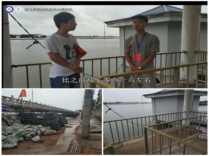 团队成员2019级电子信息类张志杨,连续多天坚守在安徽省怀宁县的高河堤坝上,参与日常巡查、看守排水水泵、清理积水等防汛救灾工作,筑牢人民群众生命财产安全防线。