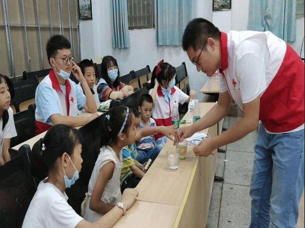 暑期社会实践“千方爱心学校”赴枞阳支教团队线下工作组、安全组全体成员来到枞阳县城关小学安置点展开志愿服务。枞阳县红十字会赈济救护部负责人程秀巧热情地接待团队队员们,并且强调活动过程中的注意事项以及安全的重要性。团队以融入枞阳县红十字会志愿服务队的形式开展了本次活动。