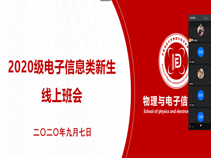 2020级电子信息类新生召开“云”班会在线答疑,辅导员张津源、本科生导生及全体新生参加了此次班会。