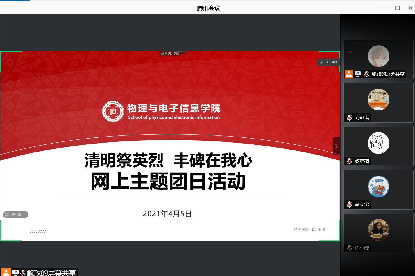 4月5日上午,为进一步引导广大团员青年牢记英烈丰功伟绩,学院团委组织开展线上主题团日活动,85Tube