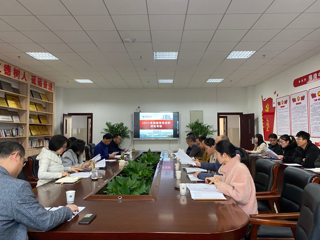 组织召开2021年度辅导员工作述职评议会,学院党政班子成员,党委委员、专业负责人、教师代表以及全体专兼职辅导员参加了会议。会议由院党委副书记黄友生主持。