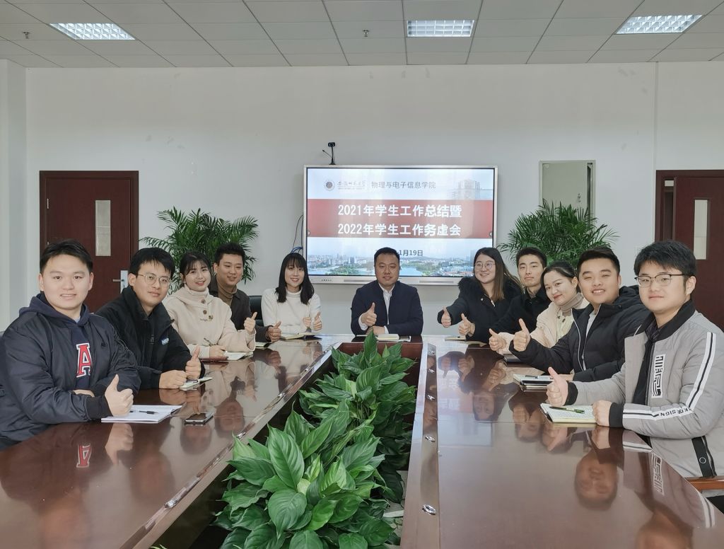 在物理楼308会议室召开2021年学生工作总结暨2022年学生工作务虚会,总结回顾2021年度学生工作,谋划部署新学年工作。全体专兼职辅导员参加会议,会议由学院党委副书记黄友生主持。