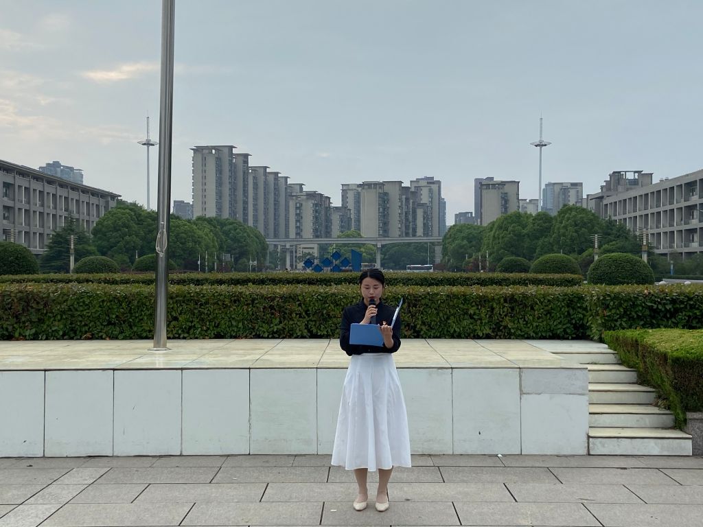 升旗仪式后,2021级电子信息工程的张子鸣和物理拔尖班的王子悦作为学生代表发言。他们以“青春有志须勤勉,莫向时代惰寸功”为主题,呼吁广大物电学子自觉听从党和人民召唤,胸怀“国之大者”,担当使命任务,用实际行动践行永远跟党走的青春誓言。