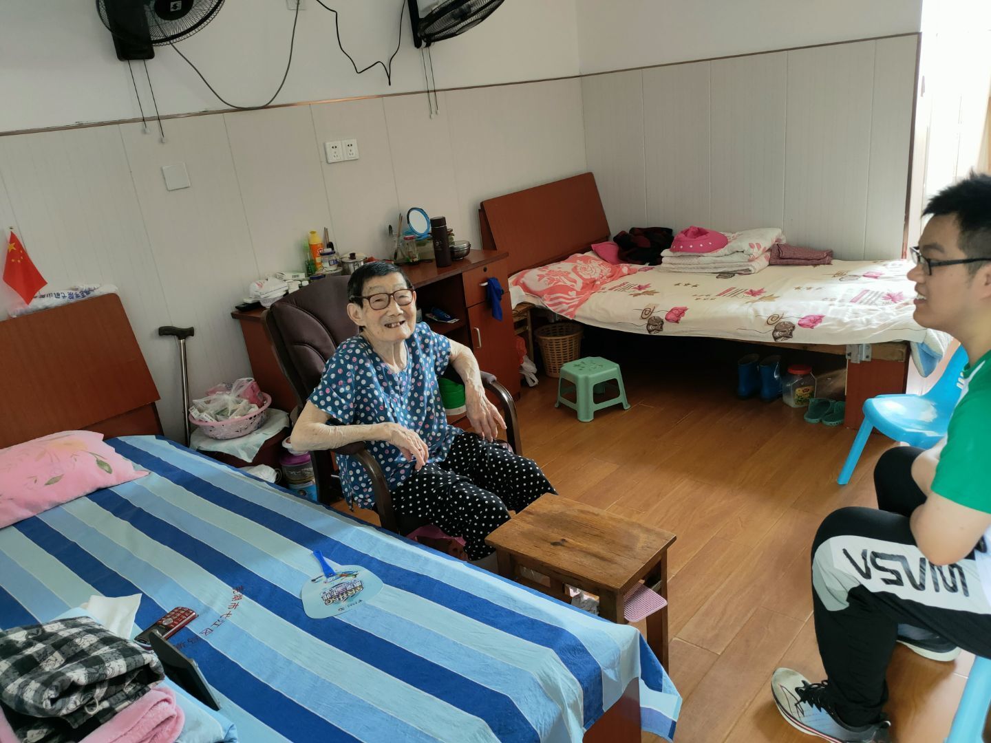 扎根基层工作,锤炼服务本领。在院长和护工的陪同下,队员们给每一位老人送去精心准备的慰问品。随后在队长的安排下,各小组成员分组前往老人们的住所,和老人们谈心、拉家常,询问老人们的生活情况和身体状况,拉近与老人们之间的距离。