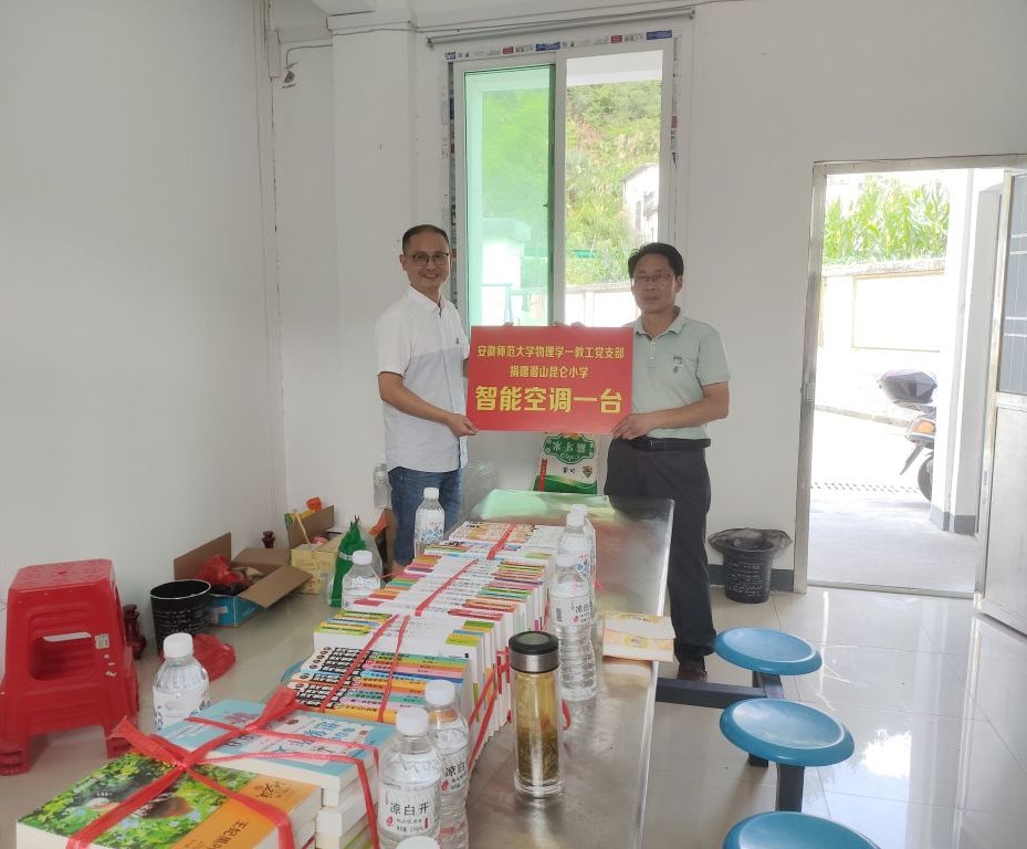 爱心捐赠,清凉一夏。为了让昆仑小学的师生们有一个清凉的学习、教学环境。盛晓伟代表安徽师范大学物理学—教工党支部向昆仑小学捐赠了一台智能空调,让全体师生在更舒适的环境中学习成长、教书育人。学院还向昆仑小学捐赠了一批图书,给更多儿童提供多读书、读好书的机会。之后双方领导还就校园教育教学管理、支教文化建设等话题展开了广泛的交流。