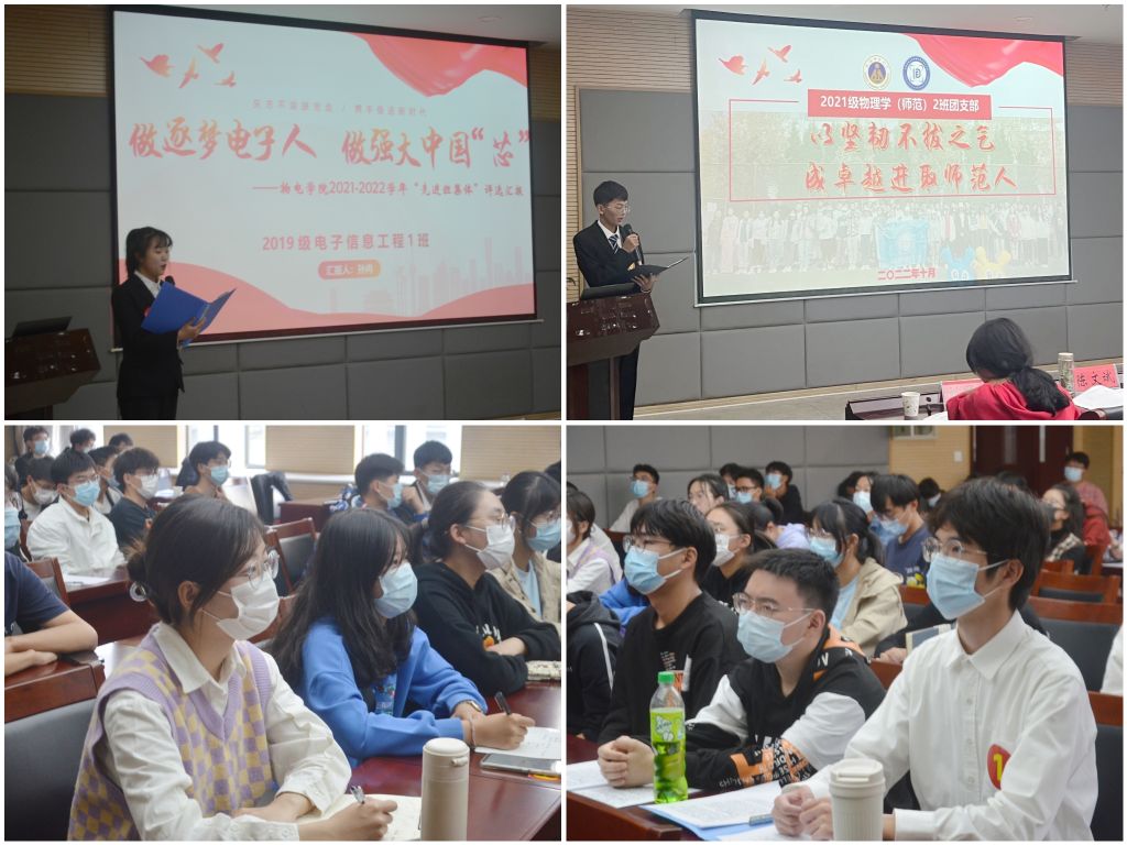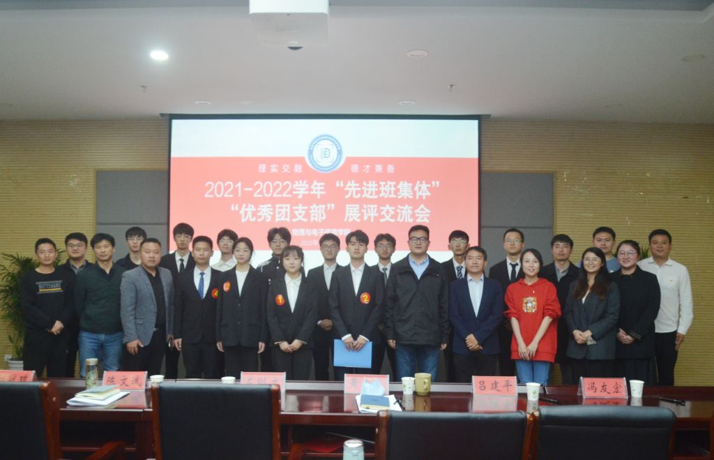 开展了2021-2022学年“先进班集体”、“优秀团支部”创建展评交流会。学院党委副书记黄友生、物理学专业负责人吕建平、通信工程专业负责人冯友宏、光电信息科学与工程专业负责人左则文、自动化专业教师陈文斌以及全体专兼职辅导员担任评委,2020级、2021级和2022级学生骨干通过线上线下相结合的方式进行观摩。交流会由院团委张大中同学主持。