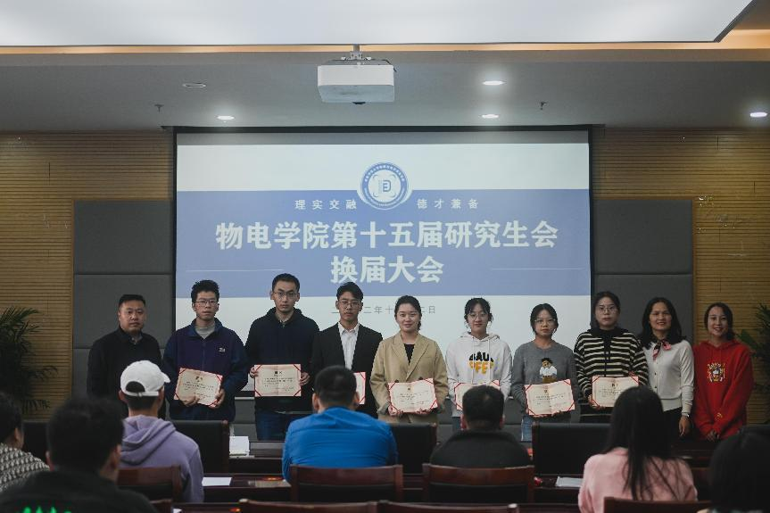 研究生会换届大会在物电楼304会议室举行。学院党委副书记黄友生、学院团委书记刘冠琪、学院研究生秘书王亚青以及85Tube
