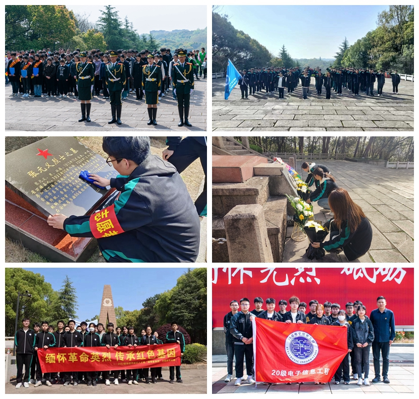 团委书记刘冠琪、2021级辅导员李慧芳,学院团委学生委员、院学生会主要工作人员、2021级电子信息工程、自动化和物理学(拔尖人才班)三个团支部青年团员参加本次活动,活动由李慧芳主持。活动在庄严肃穆的国歌声中拉开帷幕,现场众多大学生、中学生、少先队员们以及同来参加祭奠的人们共同高唱国歌。在《献花曲》中,主持人宣读祭文,同学们依次向烈士敬献鲜花,肃立默哀,表达无限追思和缅怀之情。退伍军人、21级电子信息工程专业周斌、孙安乐诵读诗歌《英雄》,呼吁青年忆英雄、学英雄、做英雄。2021级学生代表郑圆立足专业畅谈人生理想,倡议同学们用手中的笔,书写新时代的篇章,用有限的青春镶刻出美好印记。微风徐徐,纪念碑下,重温入团誓词;碑文昭昭,无名墓前,驻足感恩致敬;红旗飘飘,纪念馆里,重温先烈事迹。2021级学生代表彭泽彦感悟:“他们是时代的英雄,是历史的功臣,他们用丹心写就的事迹光照汗青,永远熠熠生辉”。学生会工作人员王培晶表示我们要铭记历史,铭记先辈烈士们的卓越功勋,珍惜这来之不易的幸福生活,努力学习,奋发向上。刘冠琪在最后总结中勉励同学们不忘先烈功勋,牢记责任使命,深耕专业领域,练就过硬本领,在新征程中敢想敢为、善作善成,让青春在建设祖国的火热实践中绽放绚丽之花.