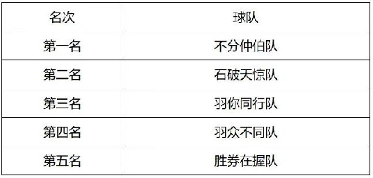 师生间的凝聚力。历经三小时鏖战,比赛的最终排名揭晓,其中“不分伯仲队”脱颖而出,凭借出色球技荣获第一!