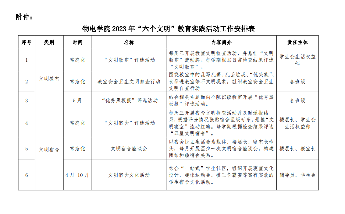 “六个文明”教育实践活动工作方案》,分阶段分类别有重点的持续推进文明修身教育。
