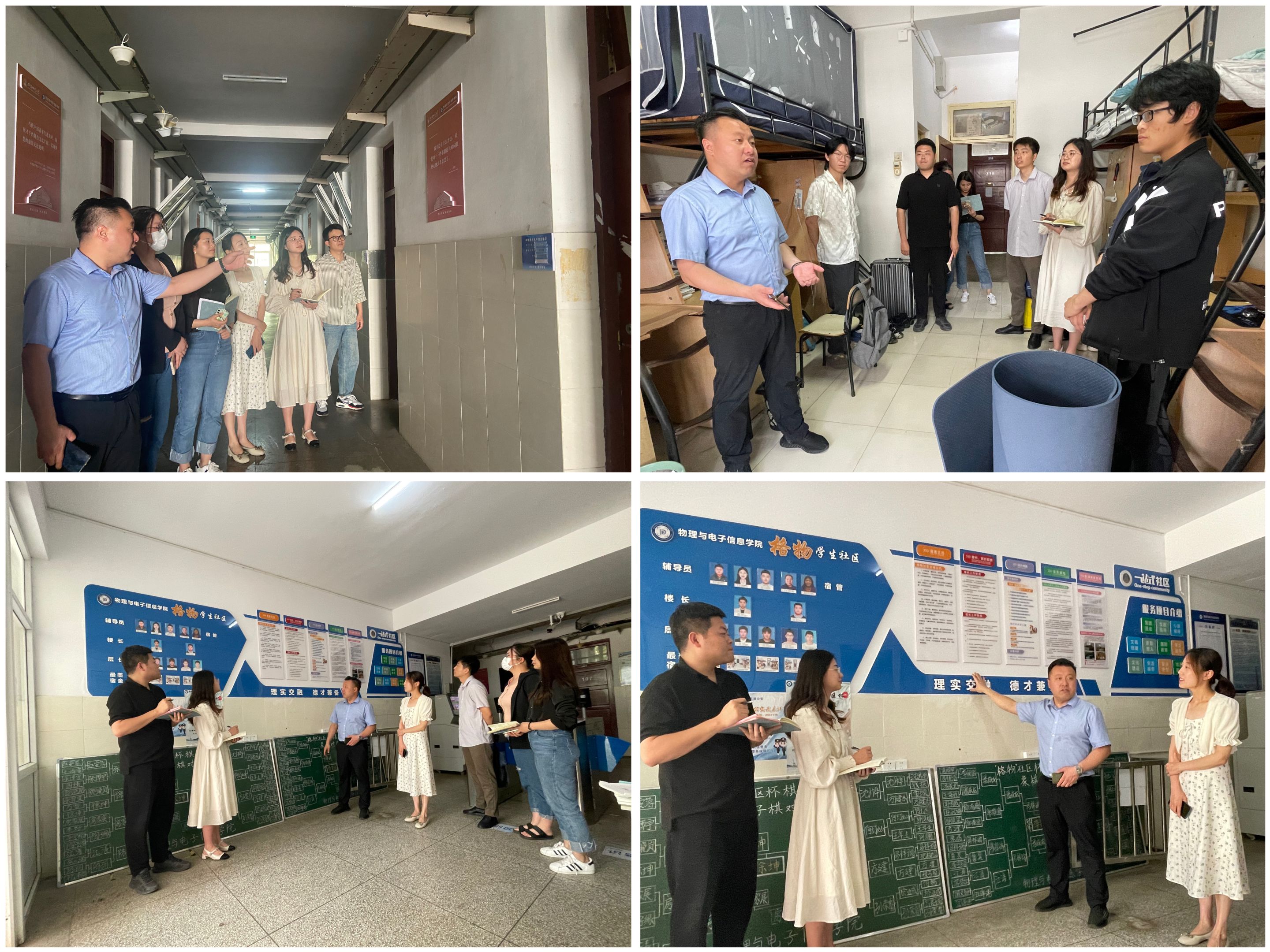 实地走访,深入调研。为有效推进“六个文明”教育实践活动在“一站式”学生社区落地见效、走深走实,5月18日下午,学院党委副书记黄友生和全体专兼职辅导员来到“格物”学生社区走访调研。大家走进学生宿舍,与学生亲切交流,了解社区卫生督导、文明劝导、文化长廊建设等情况。走访结束后,黄友生在社区召开现场推进会,他强调“六个文明”创建要坚持问题导向,对不文明现象进行全面自查自纠和教育整改,扎实推进学生文明素养教育和文明习惯养成,营造文明、和谐、安全的社区氛围,要认真总结“格物”社区建设的先行经验,进一步推广到学院其他社区的建设中。