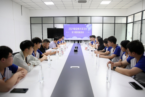 宁利新一行抵达通威太阳能(安徽)有限公司后,在工作人员的引导下来到会议室参加了实践学生慰问座谈会,座谈会由通威太阳能人事行政部曹婷婷主持。吴灵君对学院领导老师的到来表达了热烈欢迎,并向宁利新一行详细介绍了通威太阳能(安徽)有限公司的发展现状,讲解了公司人力资源体系建设情况、应届生专项培养工程、校企合作开展情况。宁利新代表学院对通威太阳能安徽(有限)公司表达了感谢,希望双方能在校企合作、人才培养方面有新思路、新方法,他要求同学们要珍惜见习机会,在企业中学思悟践,不断提升自身素质。团队成员积极分享在公司实习期间的所见所闻、所思所感,纷纷表示,通过在通威太阳能的见习,不仅增长了专业知识,还培养了实践能力和团队精神,为后续职业发展奠定了坚实的基础。