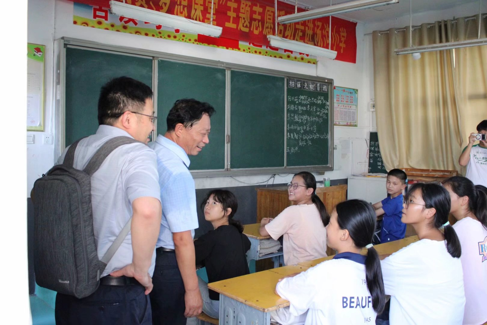 随后,张院长一行进入教室查看了各年级教学开展情况,并和小朋友们友好交流互动,询问他们对支教团队老师们的看法,鼓励小朋友们努力学习,期待他们有更好的未来。