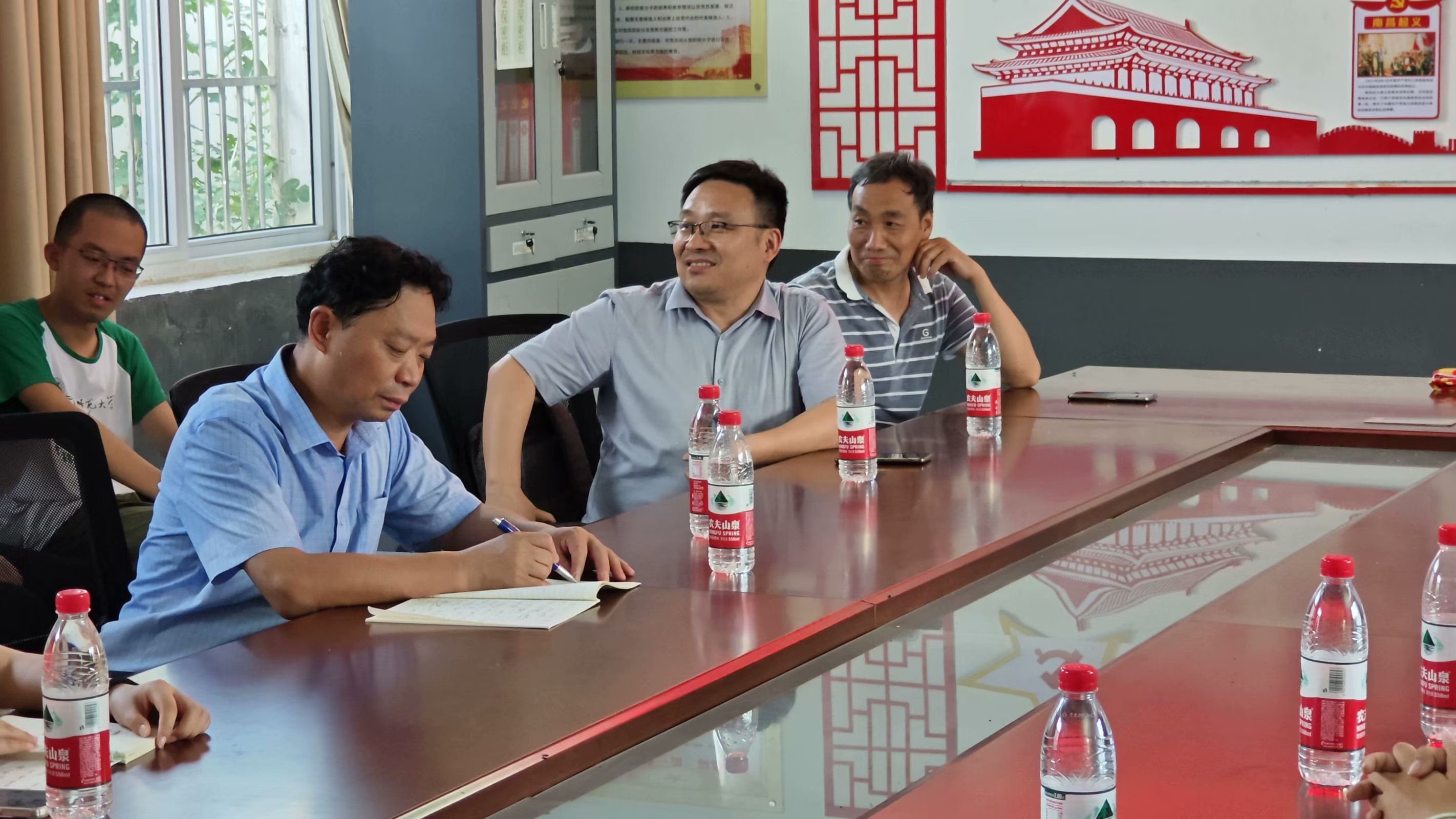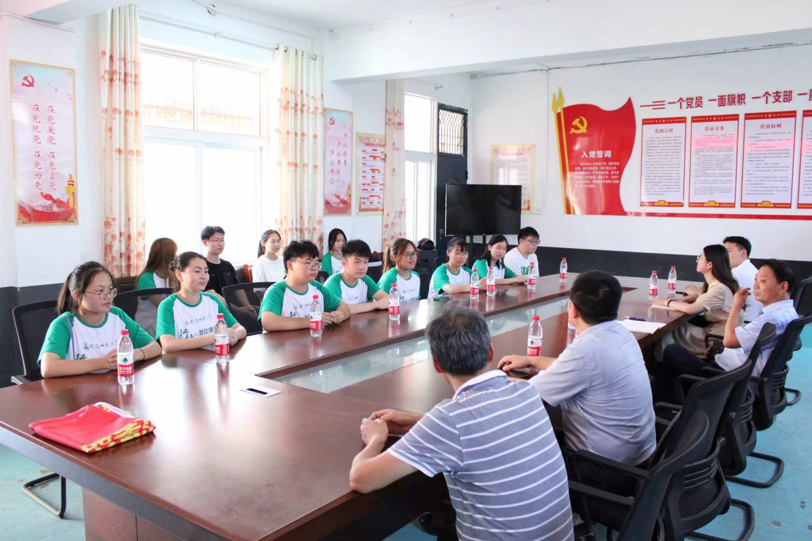 学院领导抵校后,详细了解了实践团队的生活工作环境,认真听取了队员们针对支教工作开展情况的汇报,与实践队员们交流了心得体会。张其芳院长充分肯定同学们这一周来付出的努力和取得的成效,赞扬了队员们吃苦耐劳的优秀品质,并叮嘱大家注意防暑和安全。队员们积极分享收获孩子们认可时的满满幸福感,也提出了当前支教过程中面临的一些问题。学院领导告诉同学们,教学最终目的是为了让学生们更好地学习。作为老师,应根据不同年级的学生情况,创造适宜的学习氛围和环境,不仅要传授知识,更要教授学习方法,引导学生树立目标和志向。他勉励队员们继续保持良好的教学状态和认真负责的工作态度,助力阜阳孩子成长,为阜阳孩子树立一个无私奉献,具有社会责任感的师大学子形象。