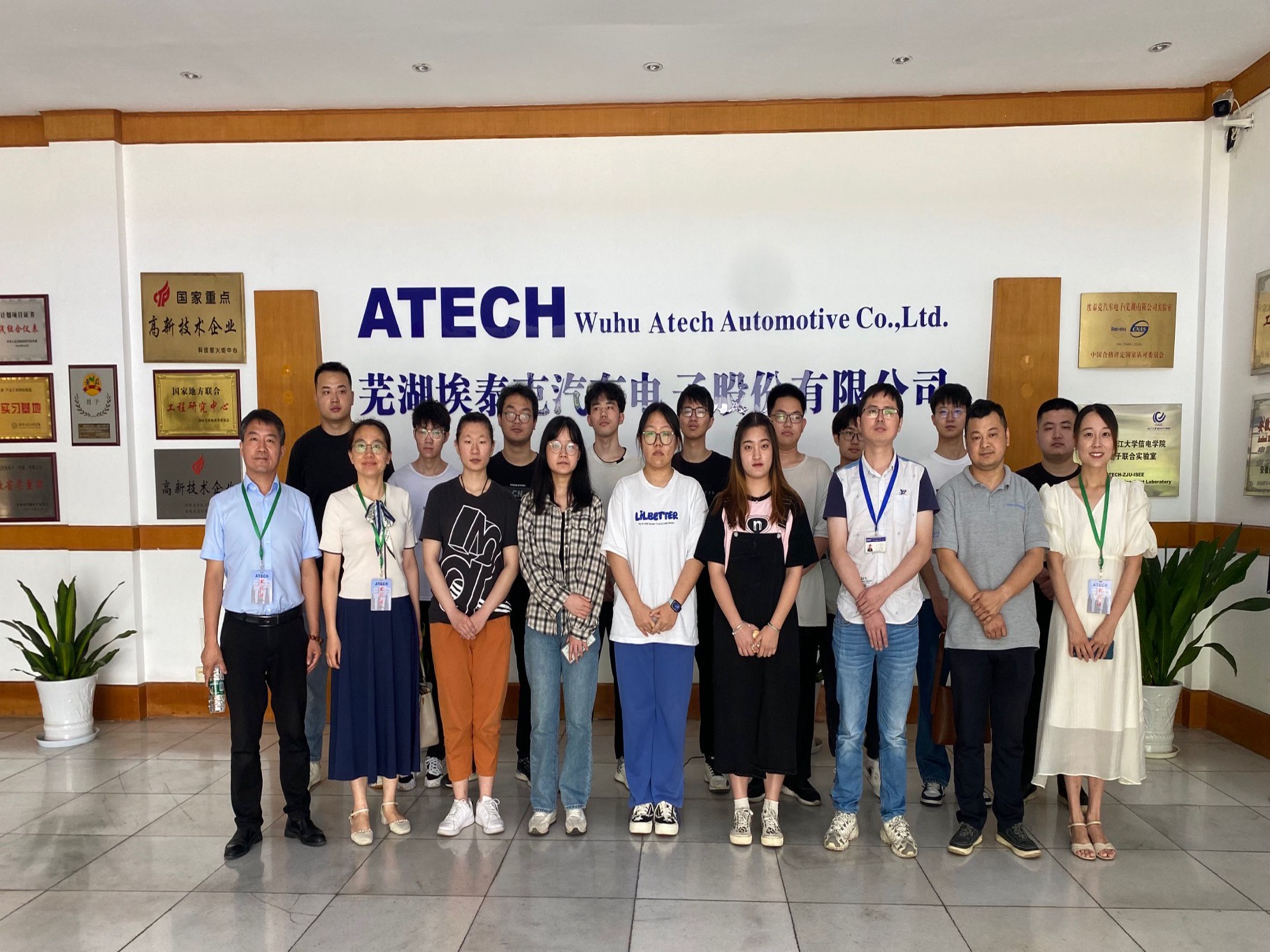 副院长张爱清、通信工程系主任冯友宏、团委书记刘冠琪、辅导员魏潘晨一行赴芜湖市埃泰克汽车电子有限公司看望慰问暑期实习实践学生,埃泰克汽车电子有限公司研发硬件部总监程敬晔、85Tube