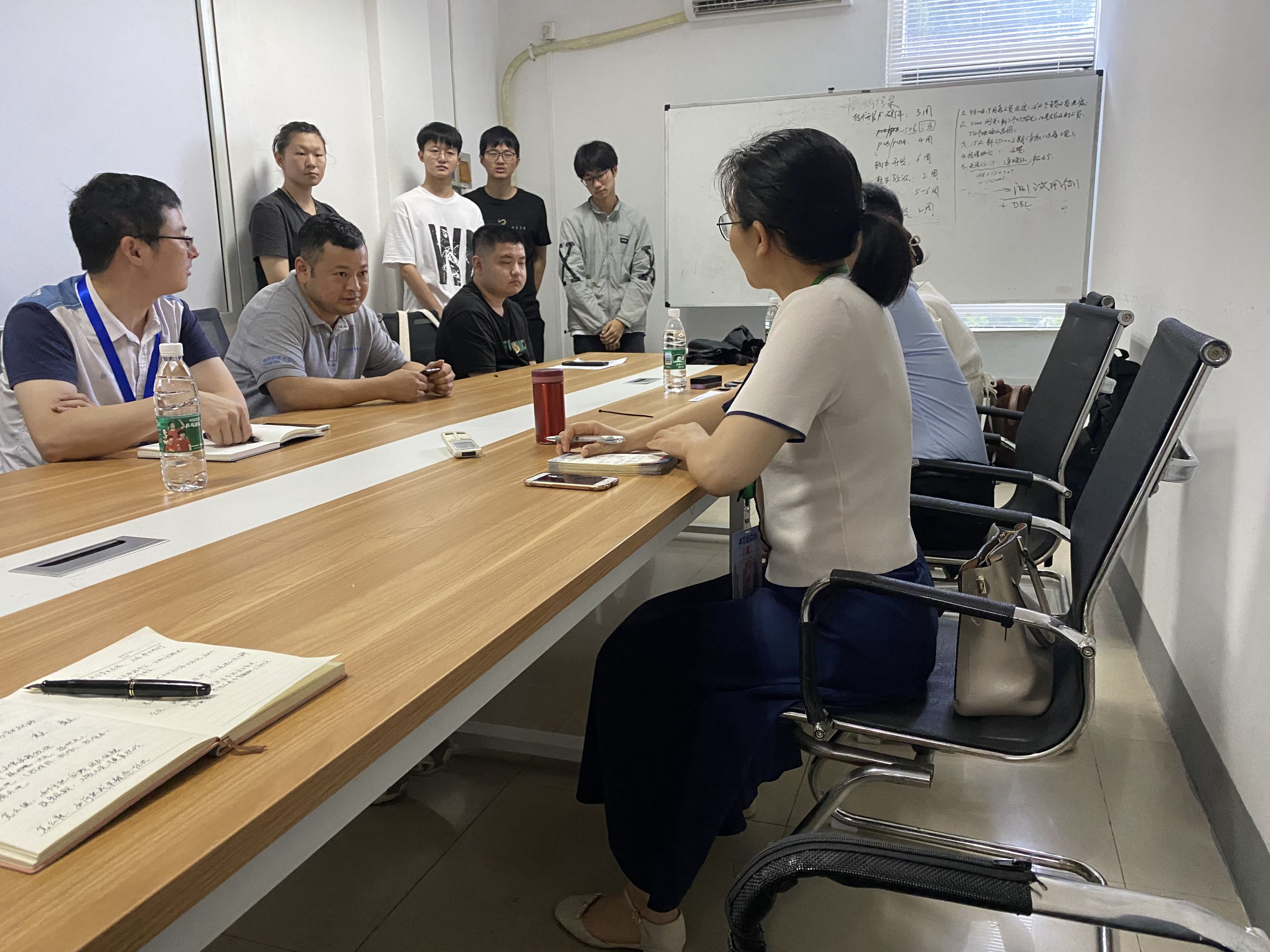 在工作人员的陪同讲解下,张爱清一行参观了埃泰克公司硬件研发车间,现场就软件开发、硬件设计、一线制造等实习实践内容进行了交流。李祥十分开心得谈到,“学弟学妹们的基础是很好的,这几天我正在逐一和他们沟通,交流专业见解和职业规划,在他们了解公司实践平台后,将被分批安排进入各类一线操作工位并从中有所收获,希望他们毕业后能留在公司继续合作。”