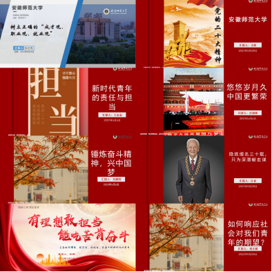 坚持深耕实践育人站位,使青年学子的理想信念在实践中生根发芽。组建“理响江淮”理论宣讲本科生社会实践团队,团队紧扣“永远跟党走,奋进新时代”主题,设计制作宣讲材料20份,宣讲视频近10个,辐射学院组建的校、院、班三级团队35支,实践团队分赴红色革命老区、偏远乡镇支教点、社区街道学校,宣讲红色故事、体悟革命精神,将思政课“搬”入烈士陵园和学校乡村。