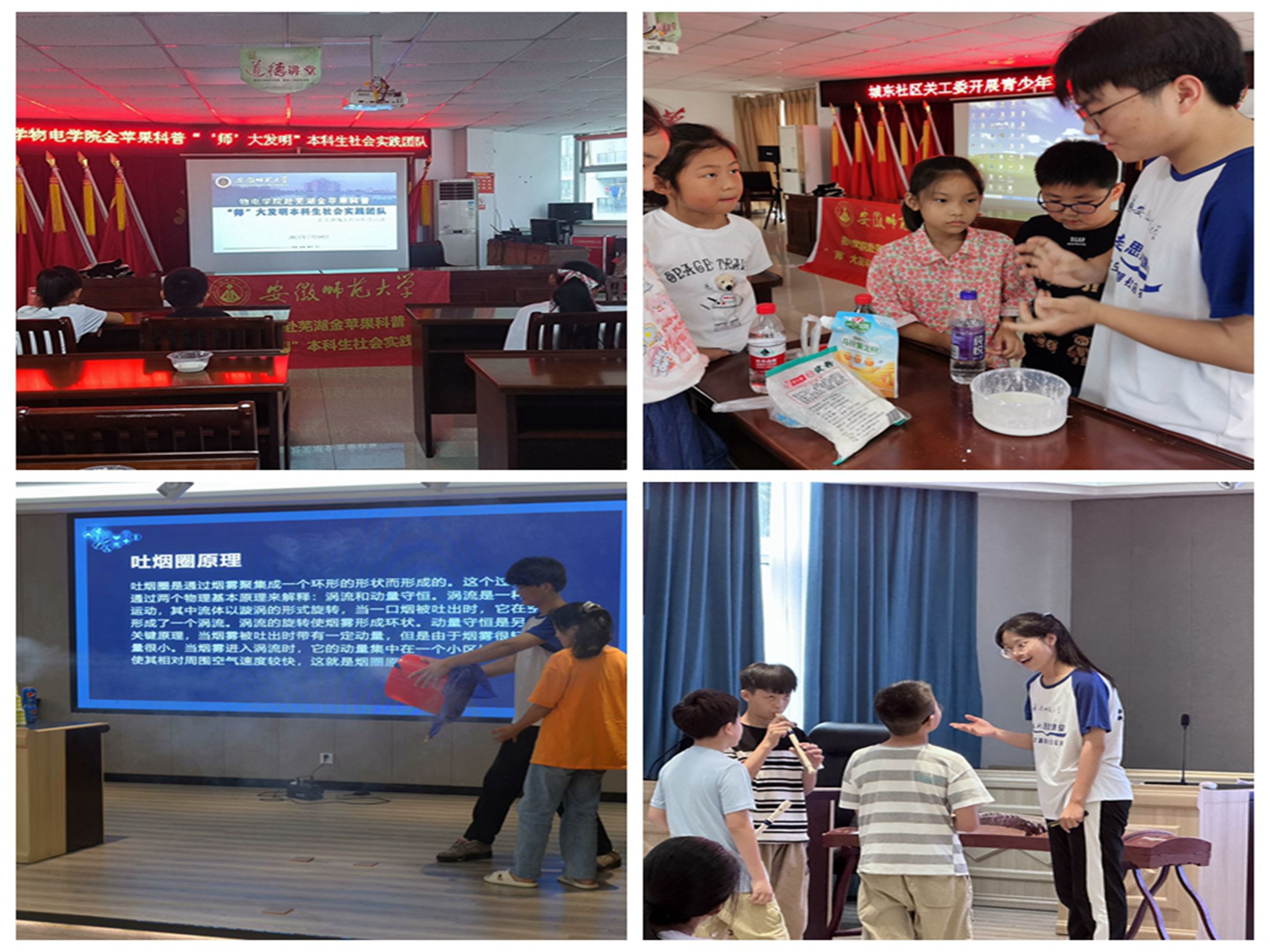 “金苹果”科普宣讲实践团队奔赴合肥、芜湖、阜阳、六安、安庆多地,依托爱心支教、社区服务开展科普宣讲活动,让科学知识走进学校、走进社区、走进生活。