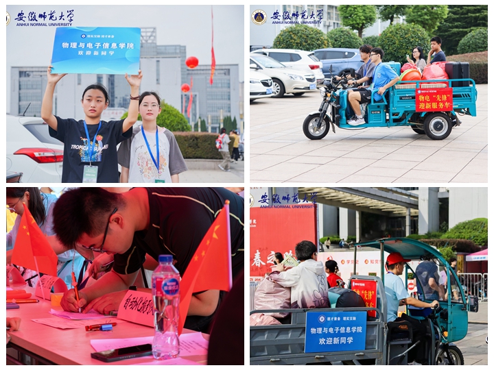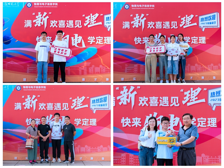 迎新现场,一列展台上展示着物电学子制作的科技作品,从工科学生研制能歌善舞的机器人、风驰电掣的智能汽车到物理师范生自制的磁感应强度探究仪、法拉第电磁感应定律演示仪、共振现象演示仪等物理教具,通过学生志愿者专业演示与讲解,让新生们在展览中感受学科魅力,对自己专业有了进一步认识。此外,学院学团组织简介、育人品牌项目、2023届考研光荣榜等宣传内容也在潜移默化中让专业思想教育加深加固。