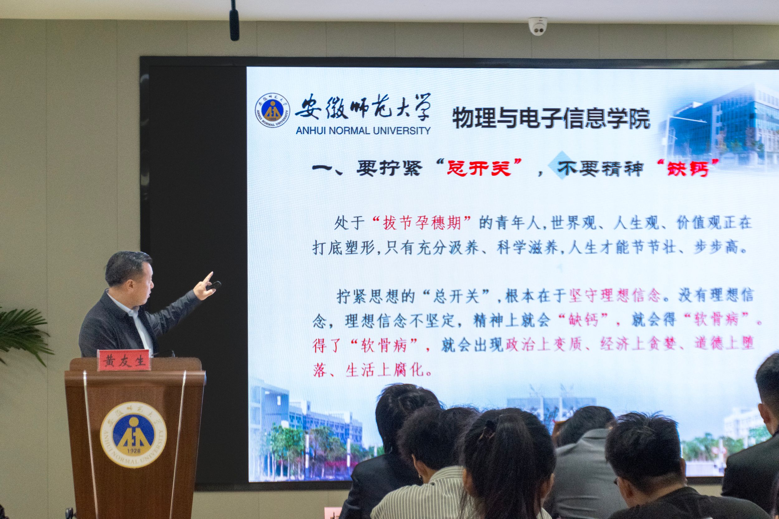 开班仪式结束后,黄友生做了以《学生干部的“六要六不要”》为题的专题讲座。他从“要拧紧‘总开关’,不要精神‘缺钙’”;“要‘兵位帅谋’,不要只当‘二传手’”;“要甘做‘青年友’,不要做‘青年官’”;“要学会‘弹钢琴’,不要‘眉毛胡子一把抓’”;“要勤于‘自找苦吃’,不要‘怕吃亏’”;“要多涵养‘书卷气’,不要‘书生气’”等六个方面开展主题讲座。培训中,黄友生结合事例引导同学们要坚定理想信念,深刻领悟“两个确立”的决定性意义,不断增强“四个意识”、坚定“四个自信”、做到“两个维护”,要坚定不移听党话、跟党走。黄友生还引用《一位部委司长对机关青年的忠告》等材料,从四个角度讲解学生骨干的必备素养。