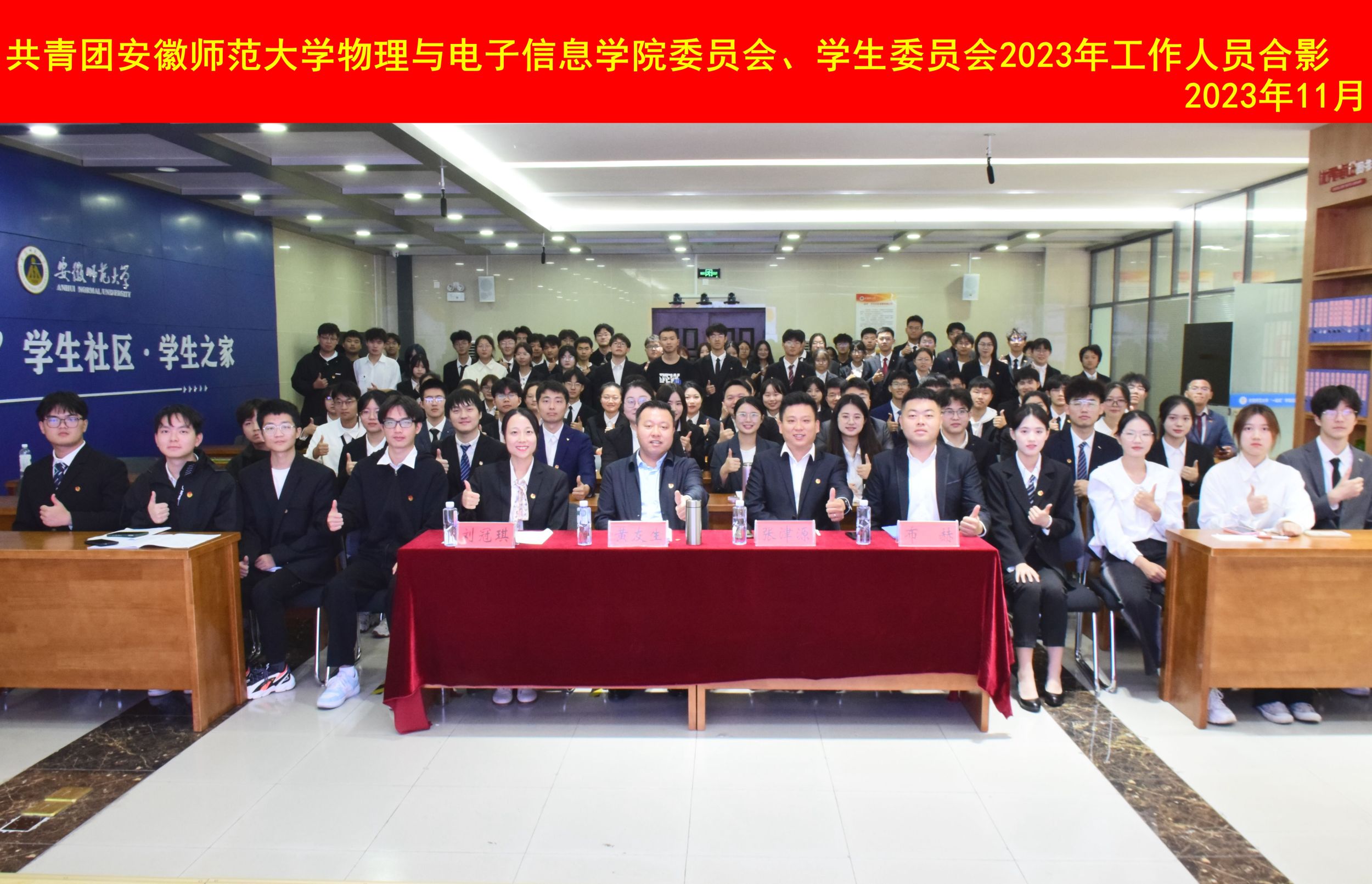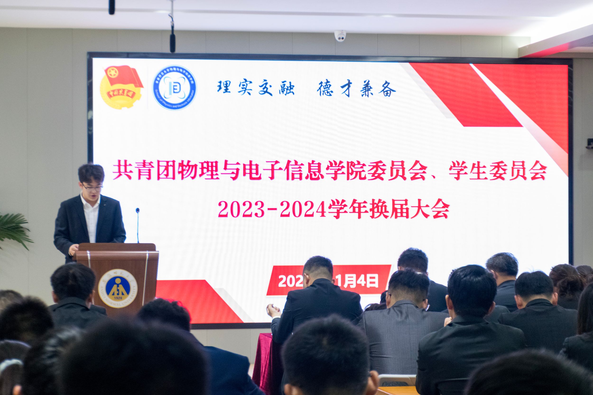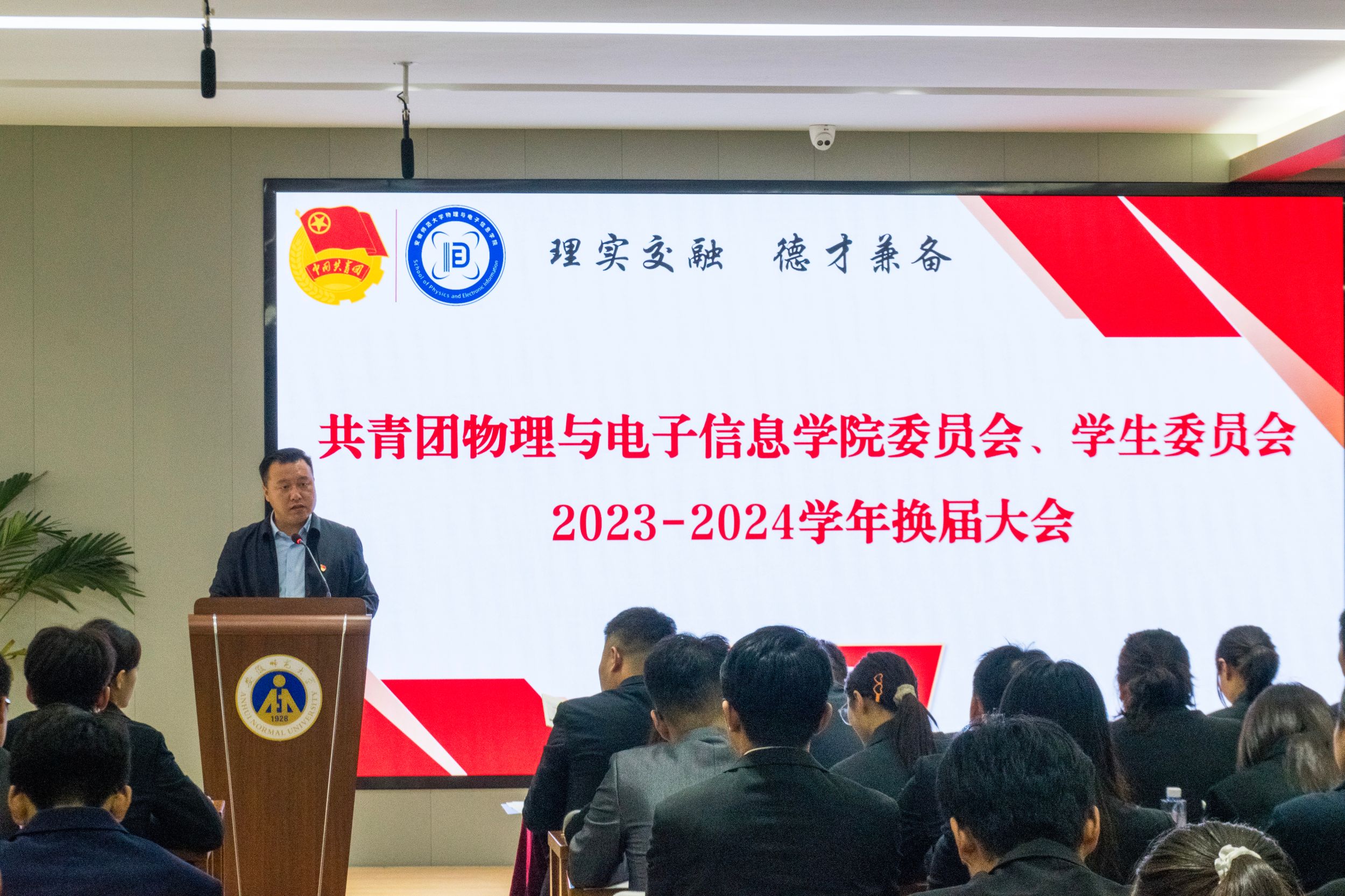 委员会、学生委员会2023-2024学年换届大会。学院党委副书记黄友生、院团委书记张津源、院学生会指导老师布赫以及全体专兼职辅导员出席会议,2022-2023学年院团委、学生会主要负责人及新学年院团委、学生会全体工作人员参加会议。