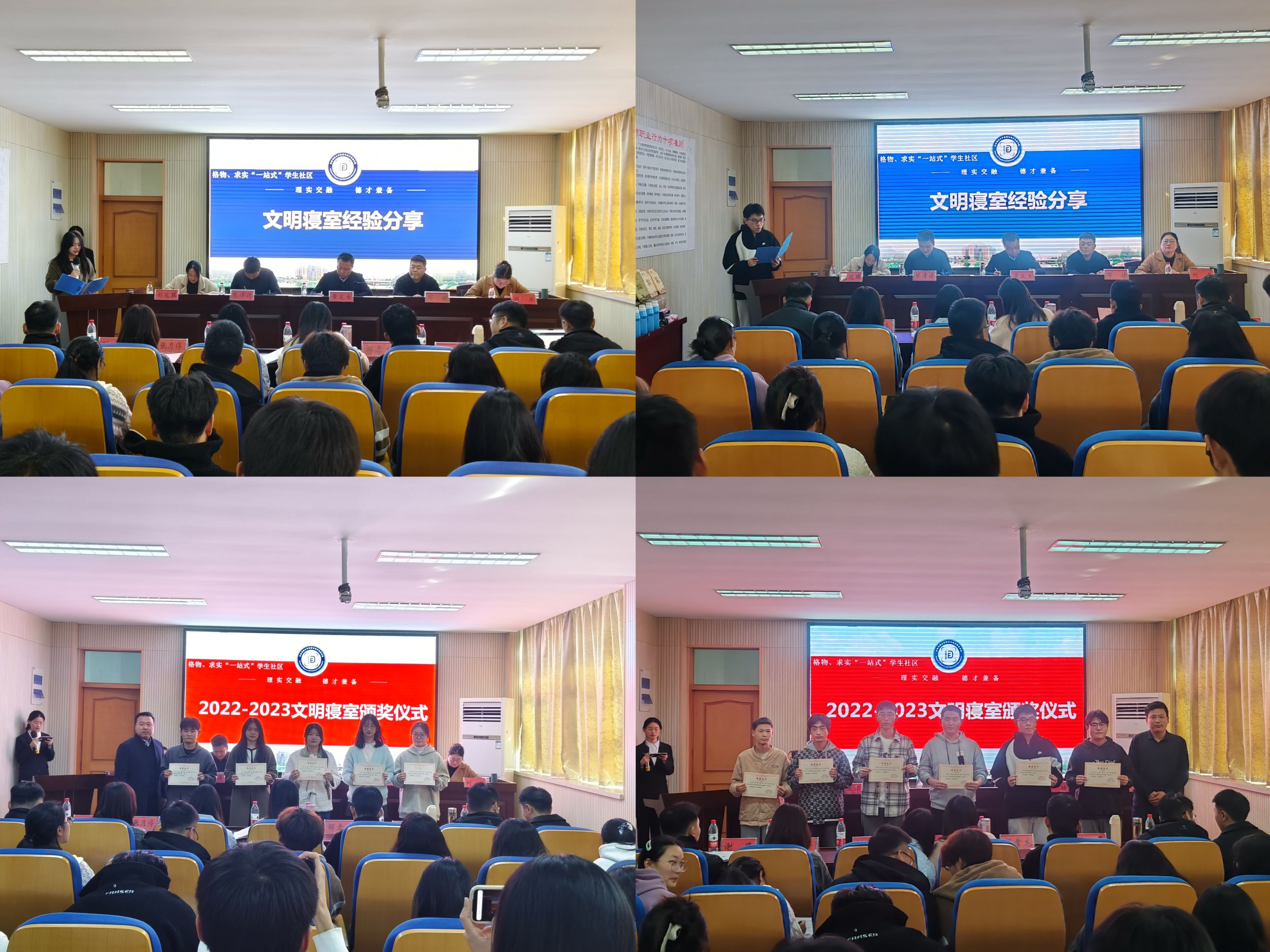 会议伊始,文明寝室代表陶冉、吴方雪从内务整理、寝室安全与和谐关系三个方面分享了经验,畅谈了文明寝室创建的重要性。随后,黄友生等人为2022-2023学年获奖的54间文明寝室代表颁发了证书和奖品。黄友生在总结讲话中对获奖寝室表示祝贺,他围绕“树牢安全意识”“培育公共精神”“注重言行雅正”三个方面对全体同学提出殷切希望。他指出,学生楼长、层长、寝室长要发挥好带头作用,共同把宿舍建设成文明和谐的“小社会”,温馨友爱的“小家庭”和共同进步的“小课堂”。