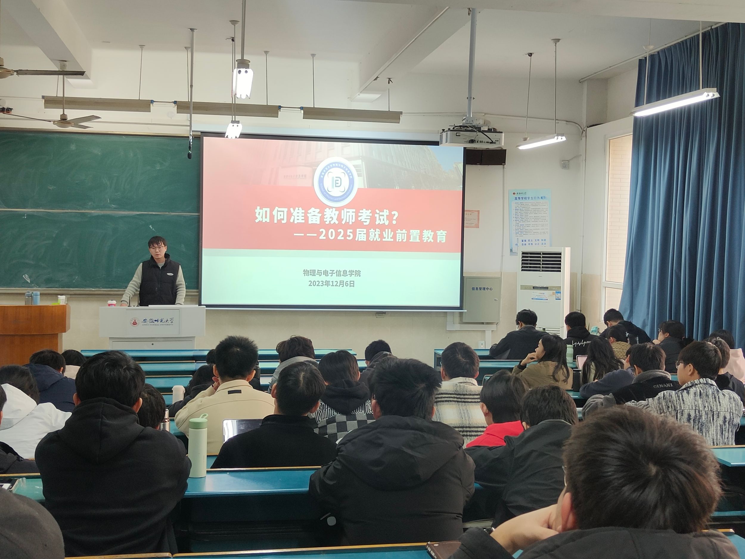 的五大科研平台,根据学生的兴趣将全体学生分流到各个科研平台,通过参加科研平台组会和系列学术讲座,引导学生深入体验科研的魅力,拓宽学术视野,培养学生创新精神;经验分享长才干,2021级物理学(师范)班邀请2018级物电学子与2020级物理(师范)同学进班分享考研和教师资格证考试备考经验,讲述教资备考和考研择校方法,推荐备考资料,理清考研误区,传授教资面试技能,为后续考研和考证夯实专业技能。