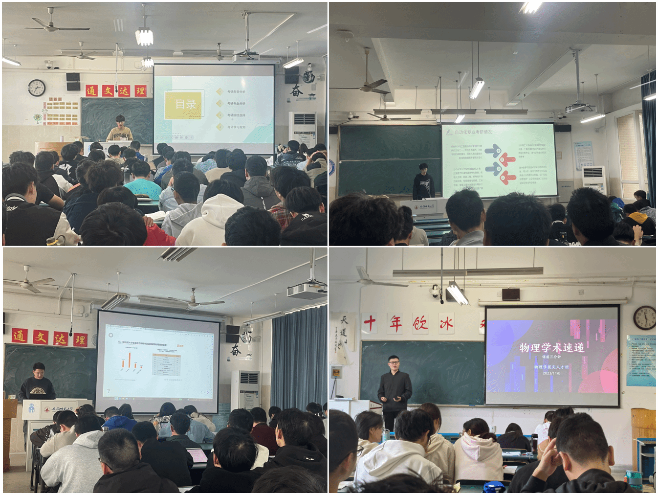 围绕朋辈赋能,坚持就业技能早辅导。能力是行动的关键。学院发挥大四、同届以及往届毕业生力量,为2021级学生赋能就业技能。学海导航树榜样,2021级工科专业邀请大四专业保研和特长生保研学长学姐进班级,学长学姐们围绕保研流程、要求和注意事项作了详细的讲解与分析;学术汇报展风采,2021级物理学(拔尖人才班)依托85Tube