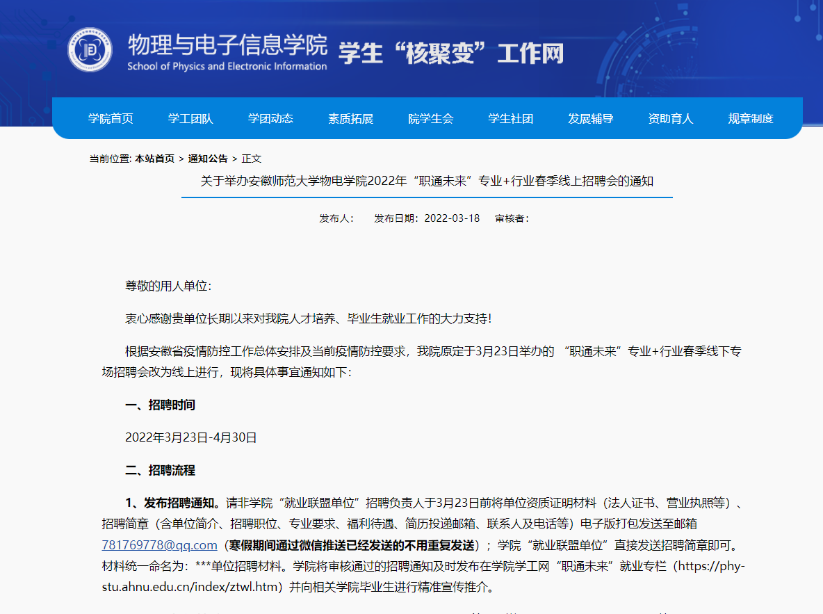 举办2022年“职通未来”专业+行业春季线上招聘会。招聘期间,校党委常委、副校长陆林,招生就业处副处长刘振杰,85Tube