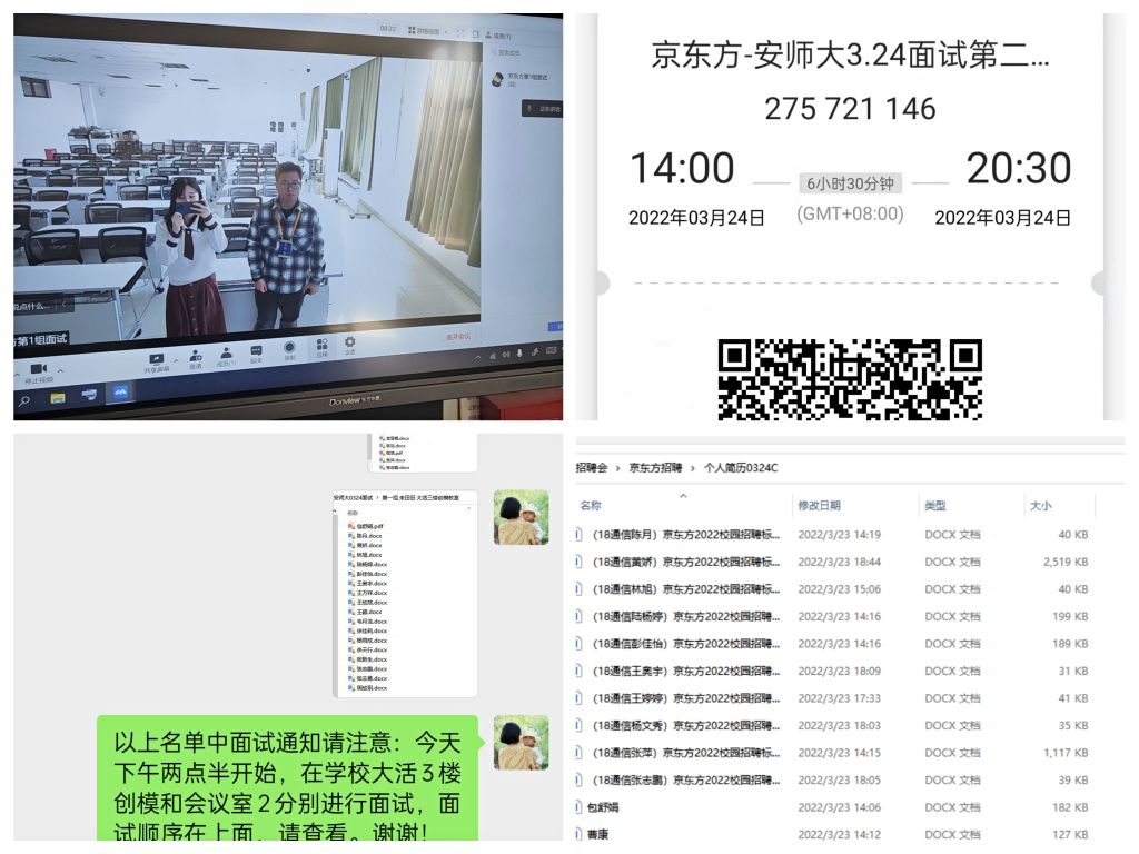 学院为进一步打通用人单位与毕业生沟通渠道,简化招聘流程,首次打造“云宣讲+云面试”模式,特邀京东方科技集团股份有限公司,通过企业线上宣讲、简历筛选竞聘、线上面试考核,确保近50名学生用不到12小时的时间实现从投递简历到线上面试,真正实现企业与毕业生云端“面对面”,指尖“键对键”。