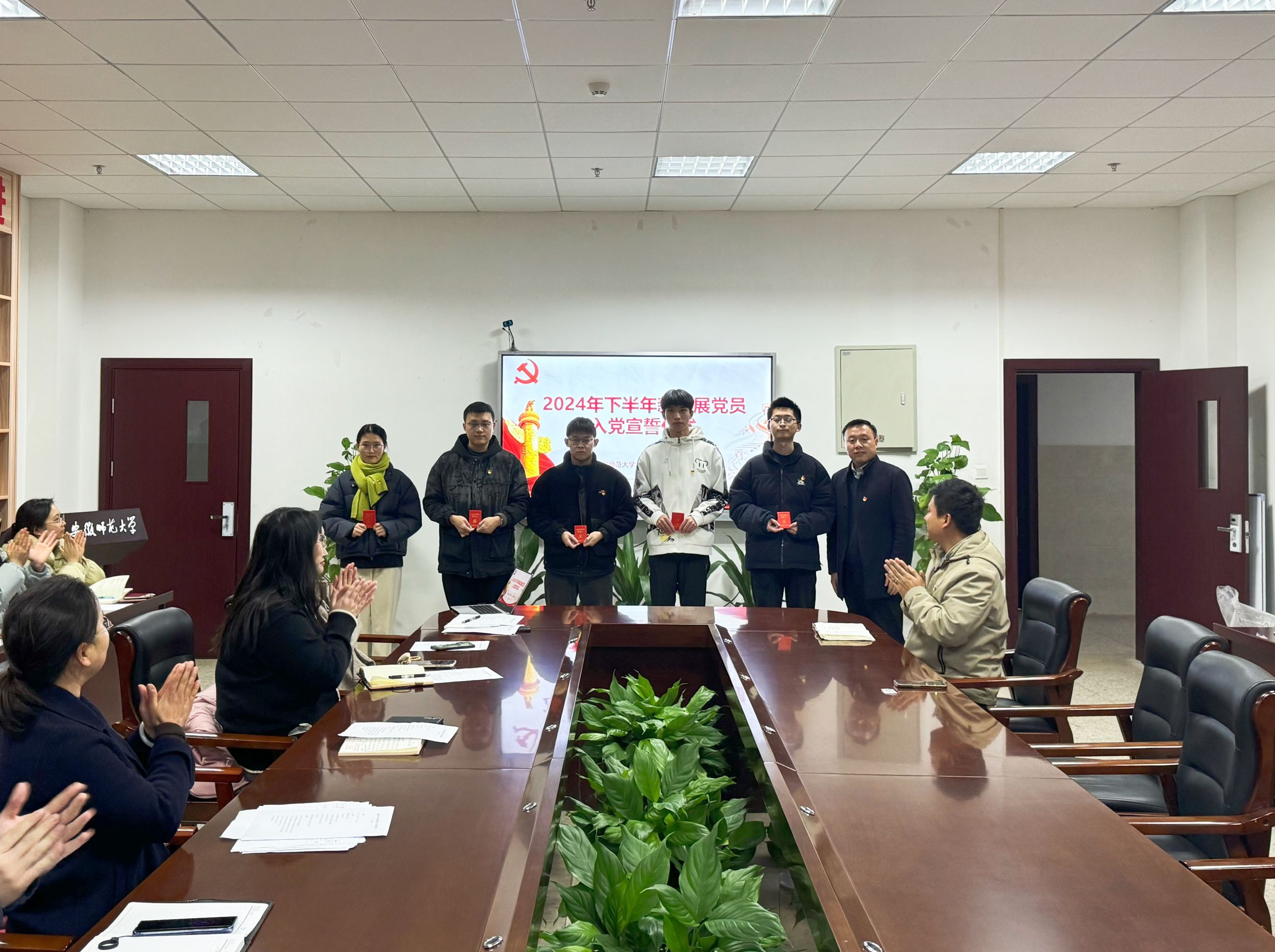 会议伊始,全体起立,奏唱国歌。王梦晓宣读学院党委关于批准中共预备党员的通知(批复),黄友生为新接收的中共预备党员代表发放《党费证》,支部书记张津源带领2024年上半年新发展党员进行入党宣誓、党员重温入党誓词。新发展党员代表赵元发言,他表示,将时刻牢记党员身份,以更高的标准要求自己,在未来的学习、工作和生活中积极发挥先锋模范作用,为党和人民的事业贡献自己的力量。
