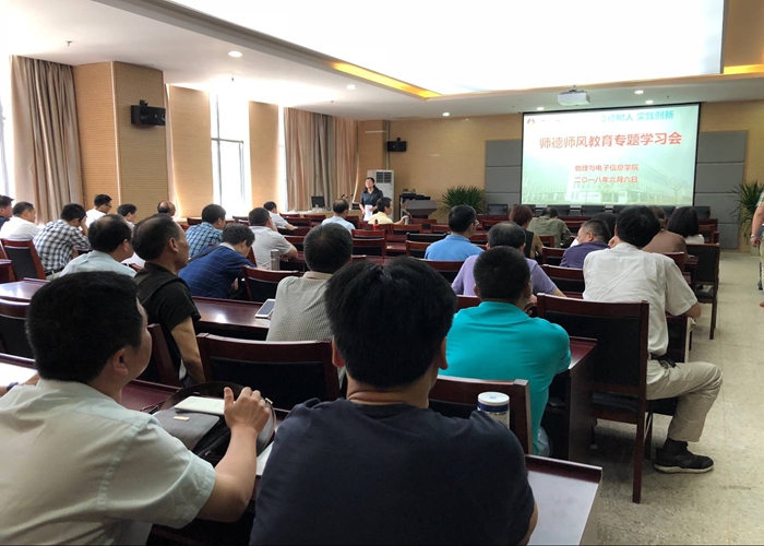 于近日开展了师德师风教育学习会,积极引导教师做有理想信念、有道德情操、有扎实学识、有仁爱之心的党和人民满意的好老师。学院全体教职工参加会议。学院党委书记李娟主持学习会。