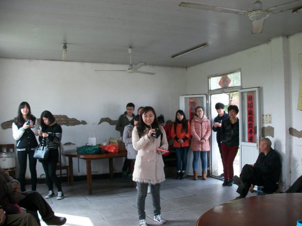 组织多名大学生去敬老院看望老人。同学们为老人们带去了香蕉、橘子等水果并与陪老人们聊天;有的同学给老人们演唱了“甜蜜蜜”、“走进新时代”、“父亲”等歌曲;也有的同学们为老人们表演了太极拳。看到老人们脸上洋溢着笑容,同学们也感到很欣慰,他们表示今后一定常来。