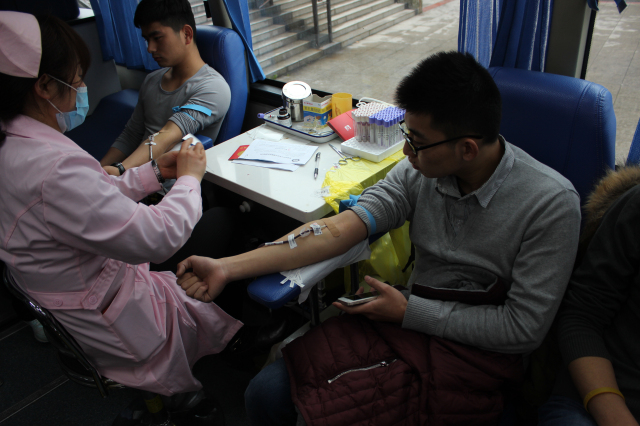 号召并组织了众多大学生参与义务献血活动。清晨细雨蒙蒙,天气寒冷,但同学们不顾寒风凛冽、热情不减,在采血车外排起了长长的队伍。当同学们被问道为什么会参加义务献血的时候,他们很平静的答道:“献血既可以挽救他人的生命,也对自己的身体健康有益,何乐而不为呢?”