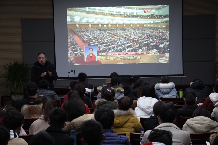 在集中收看期间,学院党委副书记吴长义和与会师生交流时说,李克强总理作的政府工作报告激动人心,深感国家实力不断增强,国家变化日新月异。同时他提醒与会学生要关注国家大事,把握科技和创新带来的机遇,也要树立正确的人生观、世界观和价值观。