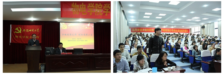 党委书记李娟、院长崔执凤、硕士生导师朱向冰及学院分党校第二期学生党员培训班全体学员、2015年拟发展入党积极分子等学生参加报告会,报告会由院党委副书记吴长义主持。