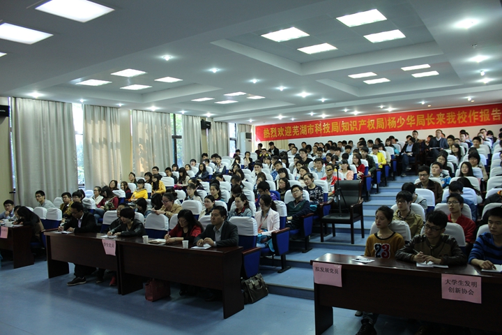 报告会上,杨少华详细分析阐述了“创业新思维、创业经验、创业道路、创业素质、创业能力、党员先锋模范作用”等六个方面的内容。他从“互联网+来了”改变的12个传统行业入手详细分析了创业的新思维;对中国创业者经历四次创业浪潮和当前创业的四大变革进行对比,分享了创业经验;从初创企业的生存道路、颠覆式微创新、创业商机等方面分享了小米董事长雷军、360杀毒软件创始人周鸿炜当年创业道路。他还结合我校03电子王成元创立南京鑫淘云店网络科技公司、05级校友王雷创办出众教育等大学生创业典型事迹指出了大学生创业应具备的素质;对芜湖市发明专利现状和大学生专利创造情况进行分析,指出大学生要不断提升科技创新能力,夯实创业基础;对芜湖市科技创新系列政策、大学生创业普惠政策进行解读,鼓励学生党员要成为创新创业先锋,充分利用当前“创业第二春”的机遇和政府的优惠政策,培养创新创业精神,做时代的弄潮儿。