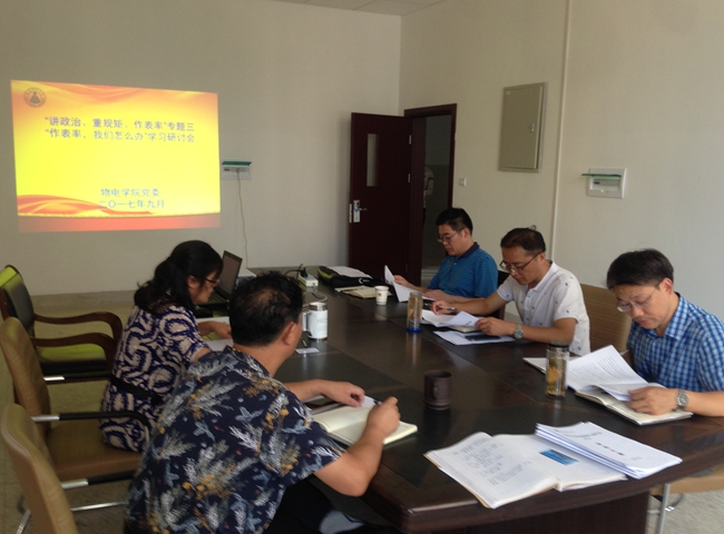 按照学校党委统一部署,学院按照教育活动计划,开展了“讲政治、重规矩、作表率”专题教育三“作表率,我们怎么办”专题学习研讨,李娟做主题发言, 她指出,领导干部要在坚信念、筑忠诚上作表率;要在抓党建、严职责上作表率;要在重实干、勇担当上作表率;要在拒腐蚀、永不沾上作表率。接着,与会人员进行了学习与讨论。