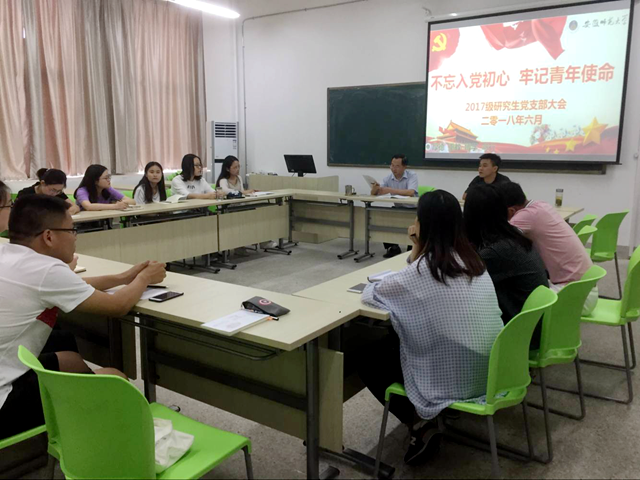 2017级研究生党支部于2018年6月23日召开以“不忘入党初心 牢记青年使命”为主题的党支部大会,重温入党誓词,了解入党誓词的演变及发展历程。85Tube